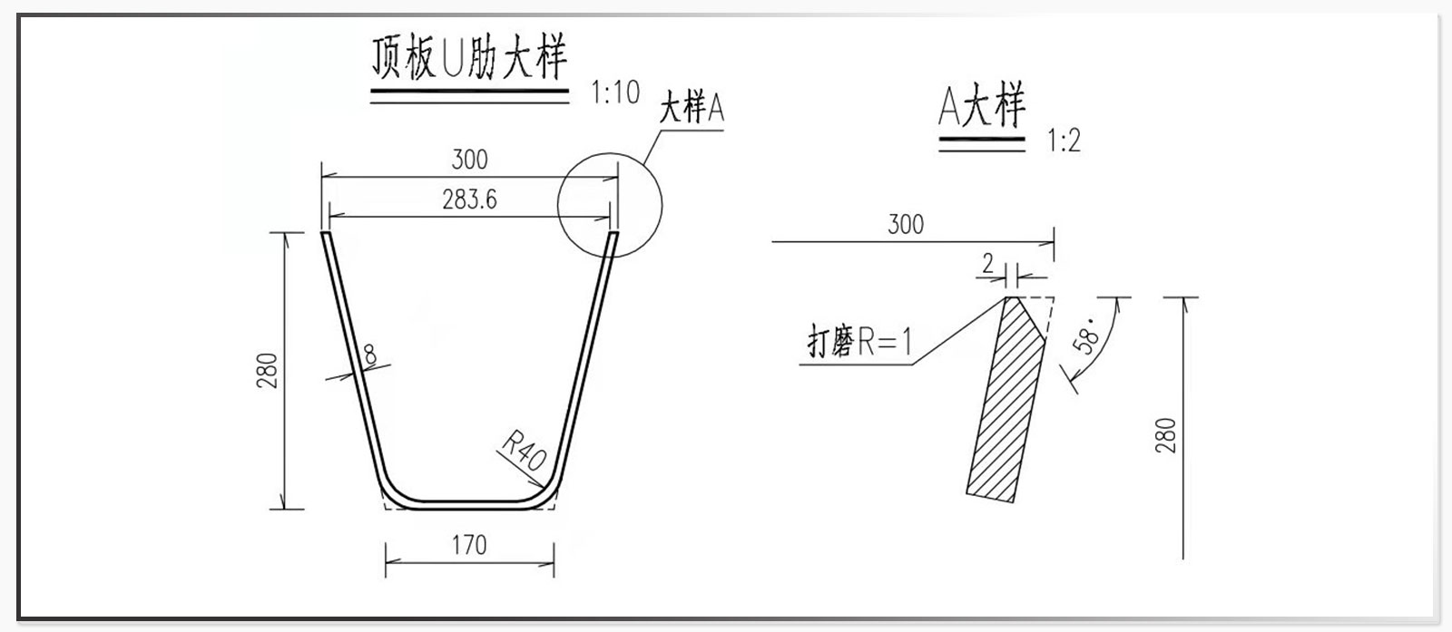 鋼結構橋梁至今已有(yǒu)200餘年的曆史,随着材料技(jì)術(shù)、制(zhì)造技(jì)術(shù)、焊接技(jì)術(shù)的提高(gāo),正交異性薄壁鋼箱梁結構設計(jì)水(shuǐ)平日趨成熟,鋼箱梁結構以其高(gāo)度低(dī)、自重輕、強度大(dà)、極限承載力大(dà)、易于加工制(zhì)造且結構連續好等特點,已成為(wèi)鋼橋橋面闆的主要結構形式。正交異性橋面闆主要由鋼結構面闆以及與其焊接的橫梁、縱肋構成,橫梁主要為(wèi)橫隔闆,縱肋主要為(wèi)U型肋結構。由于U型肋能夠提供較大(dà)的抗扭剛度和(hé)抗彎剛度,能夠改善整個(gè)橋面闆的受力狀态,因此成為(wèi)現代正交異性橋面闆的最常用的截面形式。U型肋簡稱U肋或U型加強肋,具有(yǒu)施工方便、受力均勻、自重輕、強度大(dà)、不易變形等特點,被廣泛應用于各種公路/鐵(tiě)路橋梁建設中。