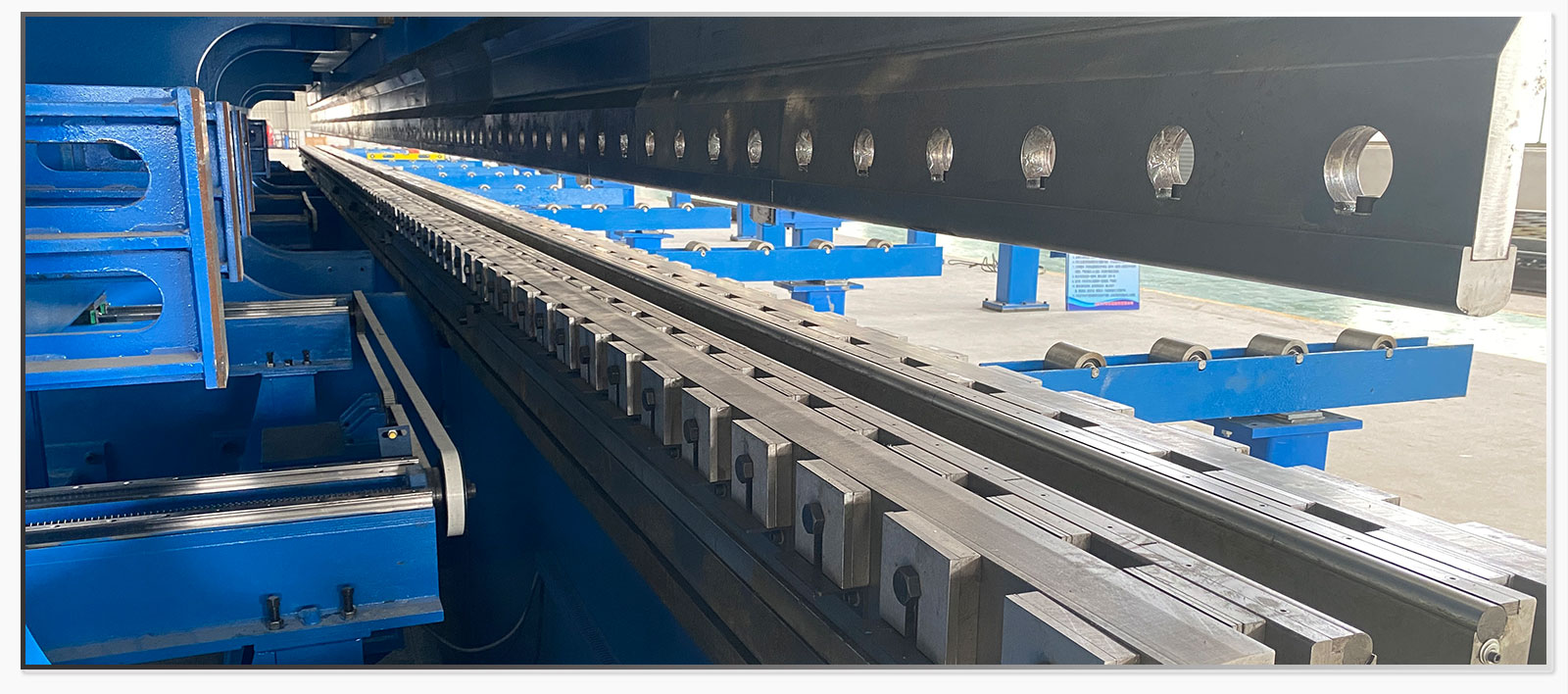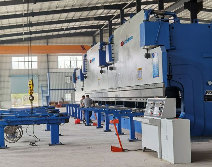 折彎成型是産品的最後一套加工工序,行(xíng)業內(nèi)大(dà)多(duō)數(shù)廠家(jiā)對于過長的産品需要二次或三次成型,産品成型的次數(shù)決定了産品的精度,一次成型加工精度最好。 我司設備為(wèi)數(shù)控液壓伺服三機聯動折彎機,加工動力2600噸,一次成型加工最大(dà)長度達24米,厚度3毫米-20毫米,為(wèi)目前行(xíng)業內(nèi)一次成型最長加工長度,年生(shēng)産能力可(kě)達3萬噸。